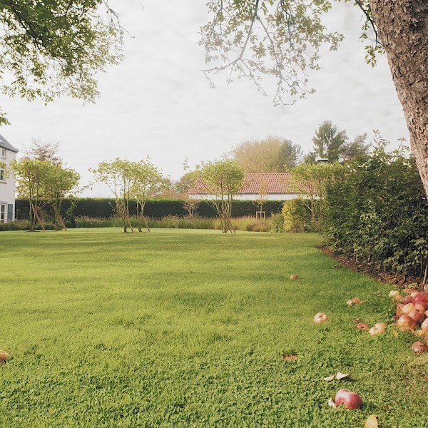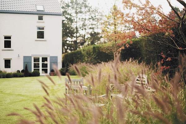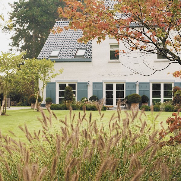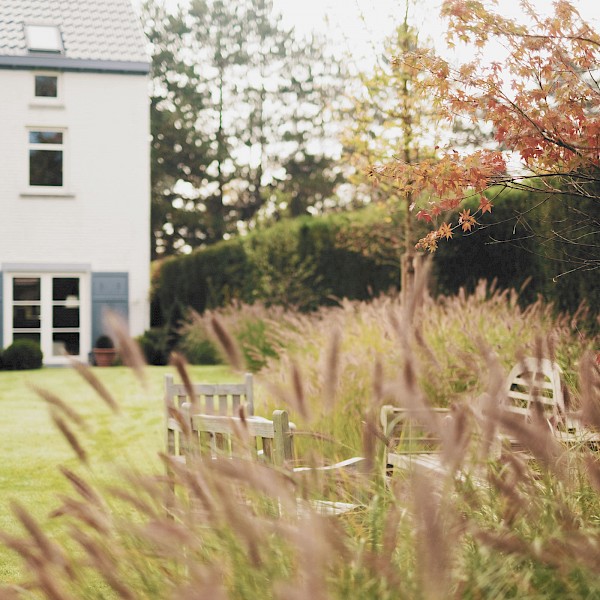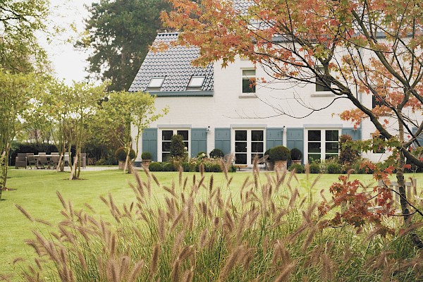 In deze rustgevende landelijke tuin zorgde de landschaps- en tuinarchitect / tuinaannemer voor structuur, kleur en veel groen.